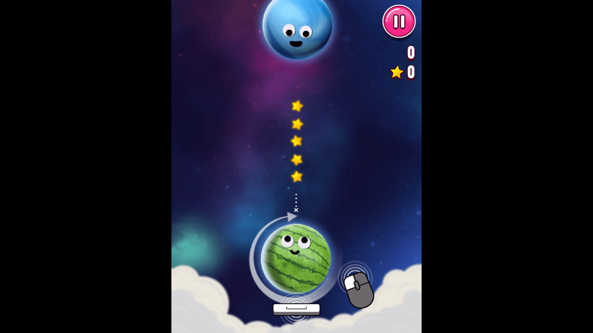 Launch Into Space – Click your mouse or hit the Spacebar to send your hero flying toward the nearest planet.