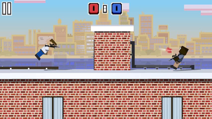 Rooftop Snipers 2 is an exciting sequel to the original Rooftop Snipers, developed by New Eich Games. This pixel-art style shooting game immerses players in chaotic duels on urban rooftops, where the primary objective is to knock your opponent off the ledge using sniper rifles and other weapons while dodging incoming shots through well-timed jumps. The game emphasizes physics-based mechanics, adding unpredictability with factors like bullet velocity, wind, and environmental hazards.