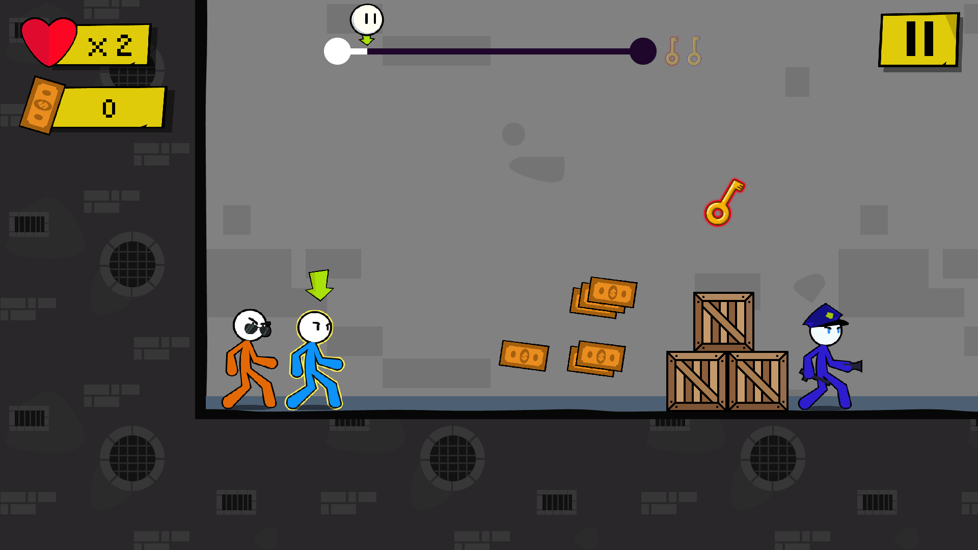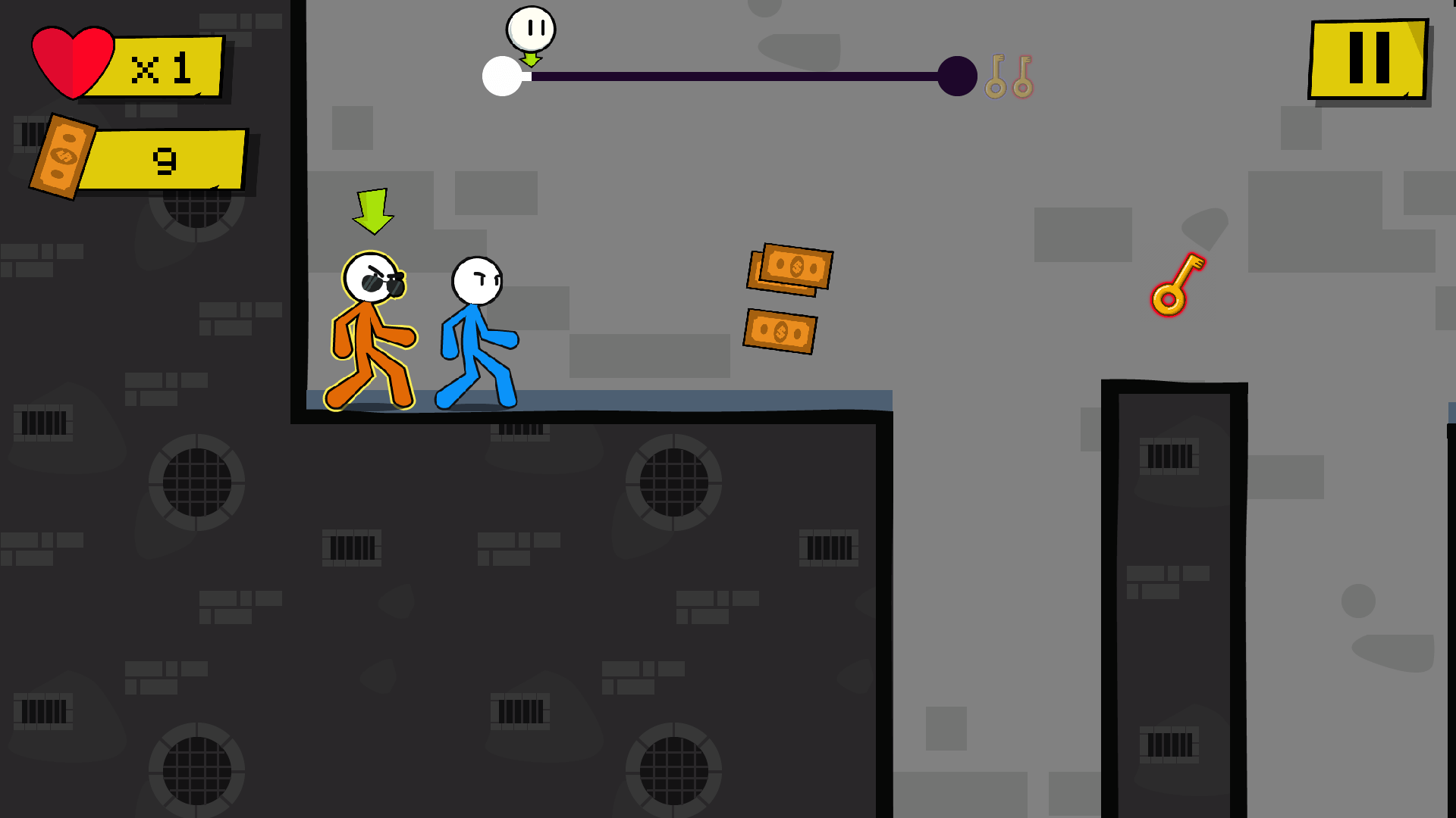 Two stickman brothers are locked up in a heavily guarded prison, but they won’t stay behind bars for long. Your mission is to guide both characters through tricky levels, find the correct colored keys, and unlock the doors to freedom. Each brother requires a specific key for their door, so teamwork is essential.