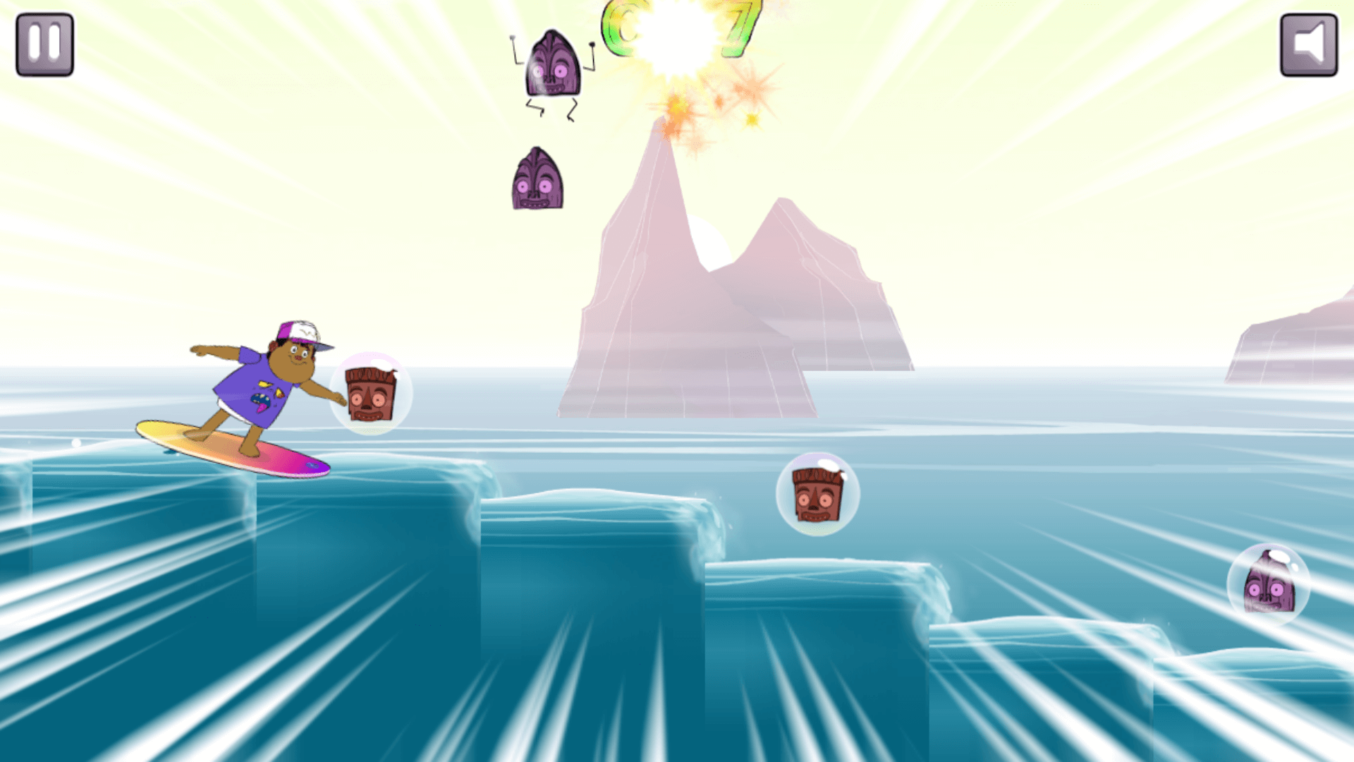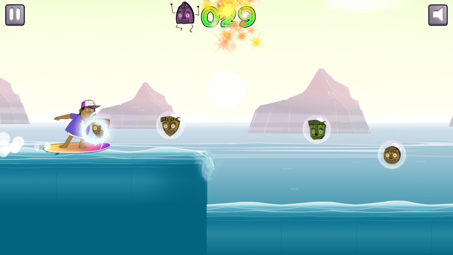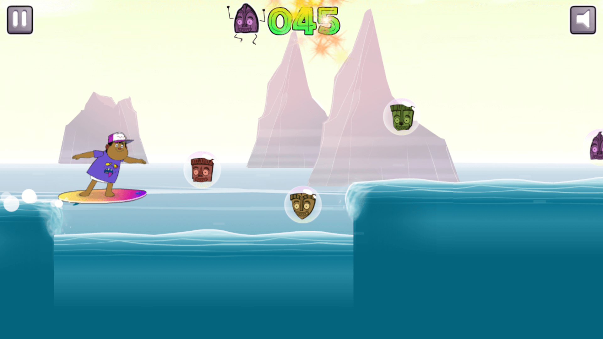In Monster Beach: Surf’s Up, your mission is simple: stay on your board, avoid obstacles, and grab as many monster masks as possible. Each mask you collect adds to your score, but one wrong move can send you crashing back to the start.